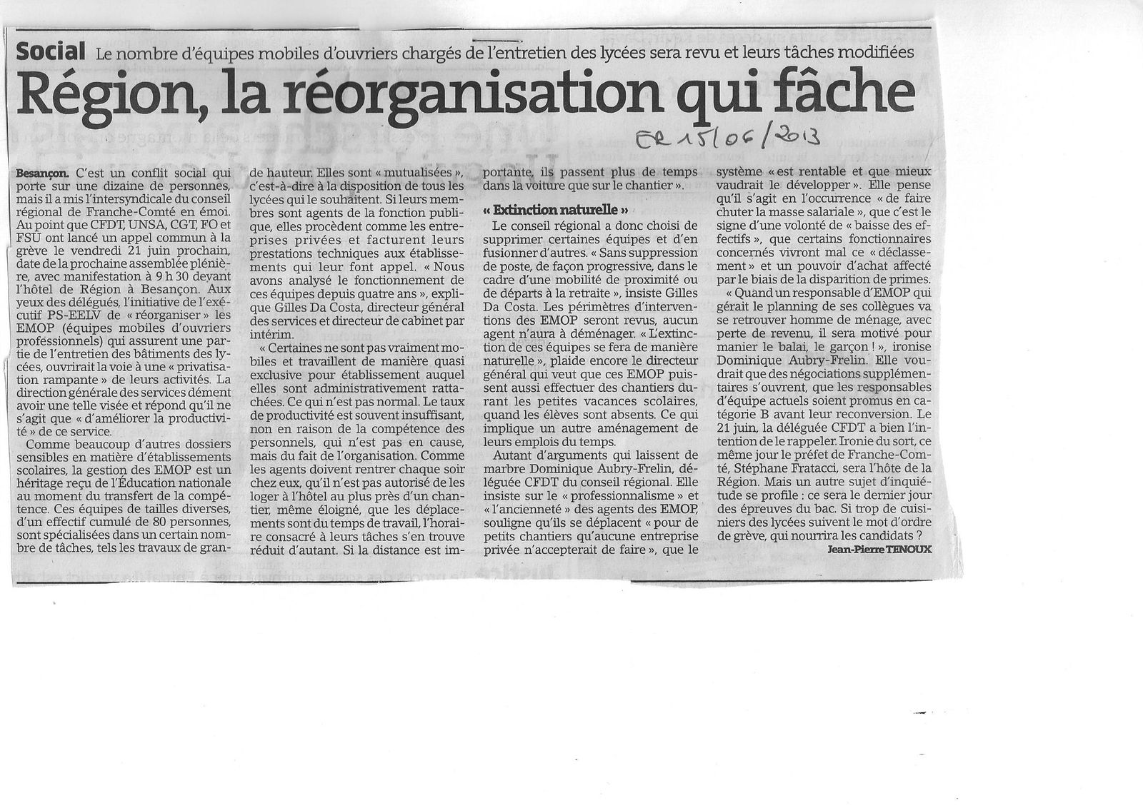 La politique de la Région commence à toucher le siège : un agent de l’administration générale part en mutation dans un lycée, la Région répond qu’il était en surnombre (en clair qu’il ne faisait rien !) pour ne pas le remplacer. En même temps les recrutements au haut de l’échelle ne posent pas de problèmes ! un DGA de plus pour encadrer les directions Europe-International, CESER et Enseignement supérieur Recherche.