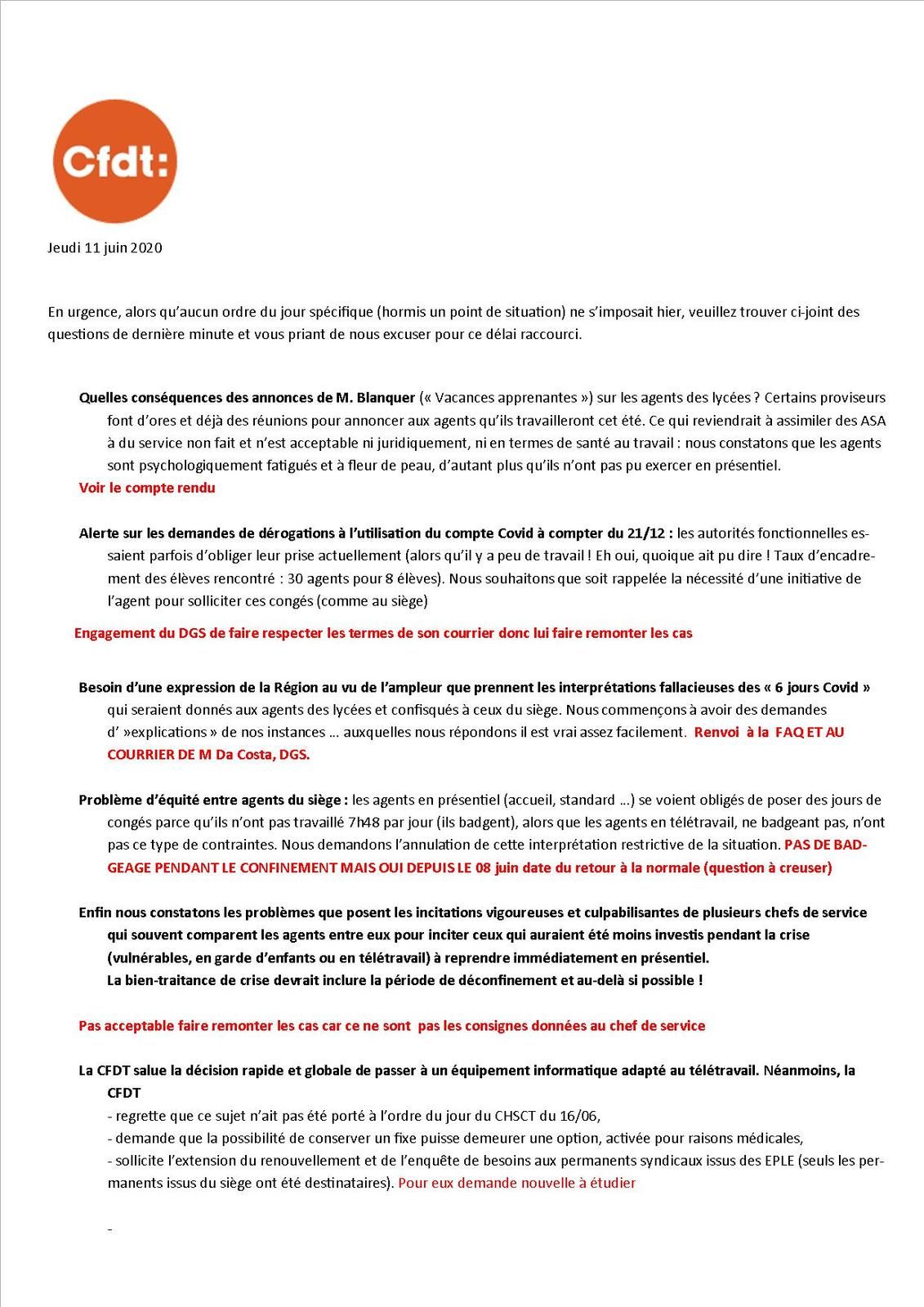 2. Questions posées par la CFDT (voir notre blog du 15/06)